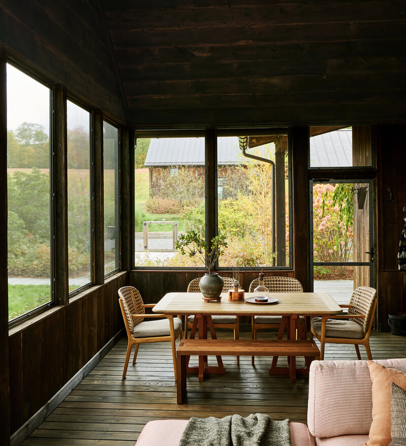 The soul of the property revealed itself the moment you arrived. Mature gardens, old trees, and the sense of quiet permanence guided every choice we made. In the sunroom and the outdoor-facing spaces, the goal was simply to harmonize with what was already here. Light, restrained materials, gentle textures, and an easy flow keep the focus on the landscape and the calm that settles over the property from the moment you step onto it.