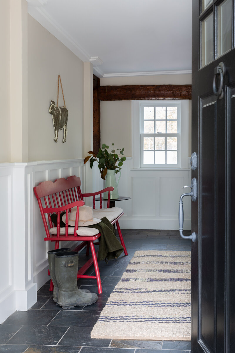 These elements extended into the other spaces, focusing on honoring the historic components of the home: the fieldstone fireplace, made from stones sourced throughout the property, and the comforting den where the owner did his homework as a child.