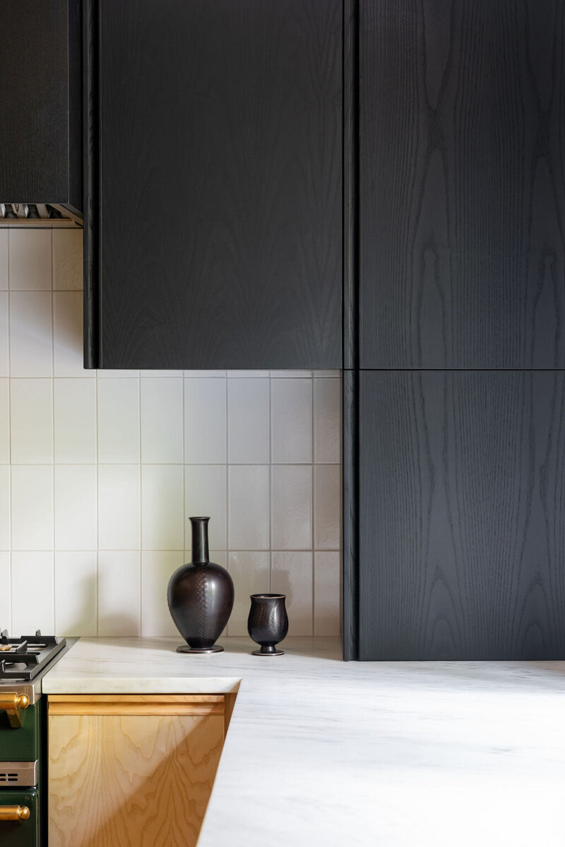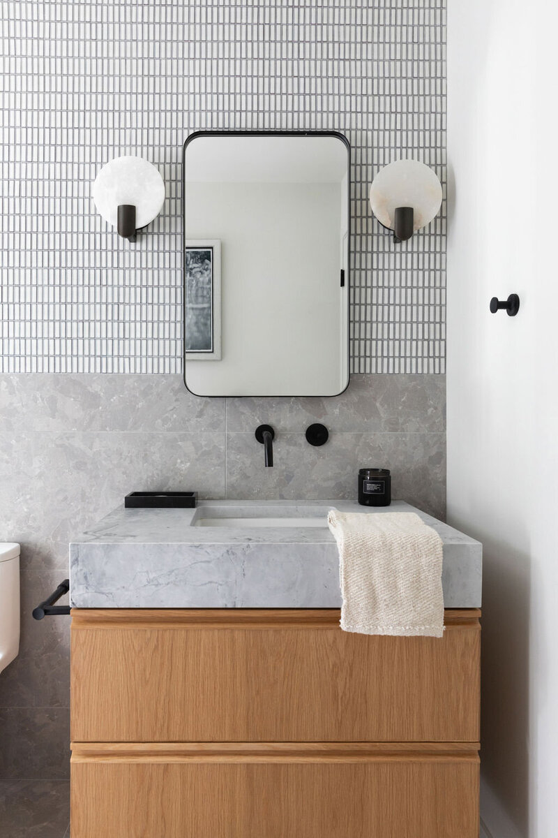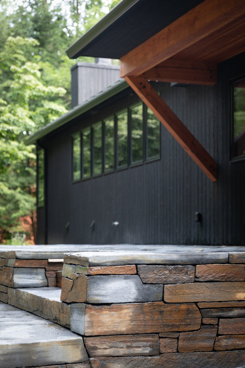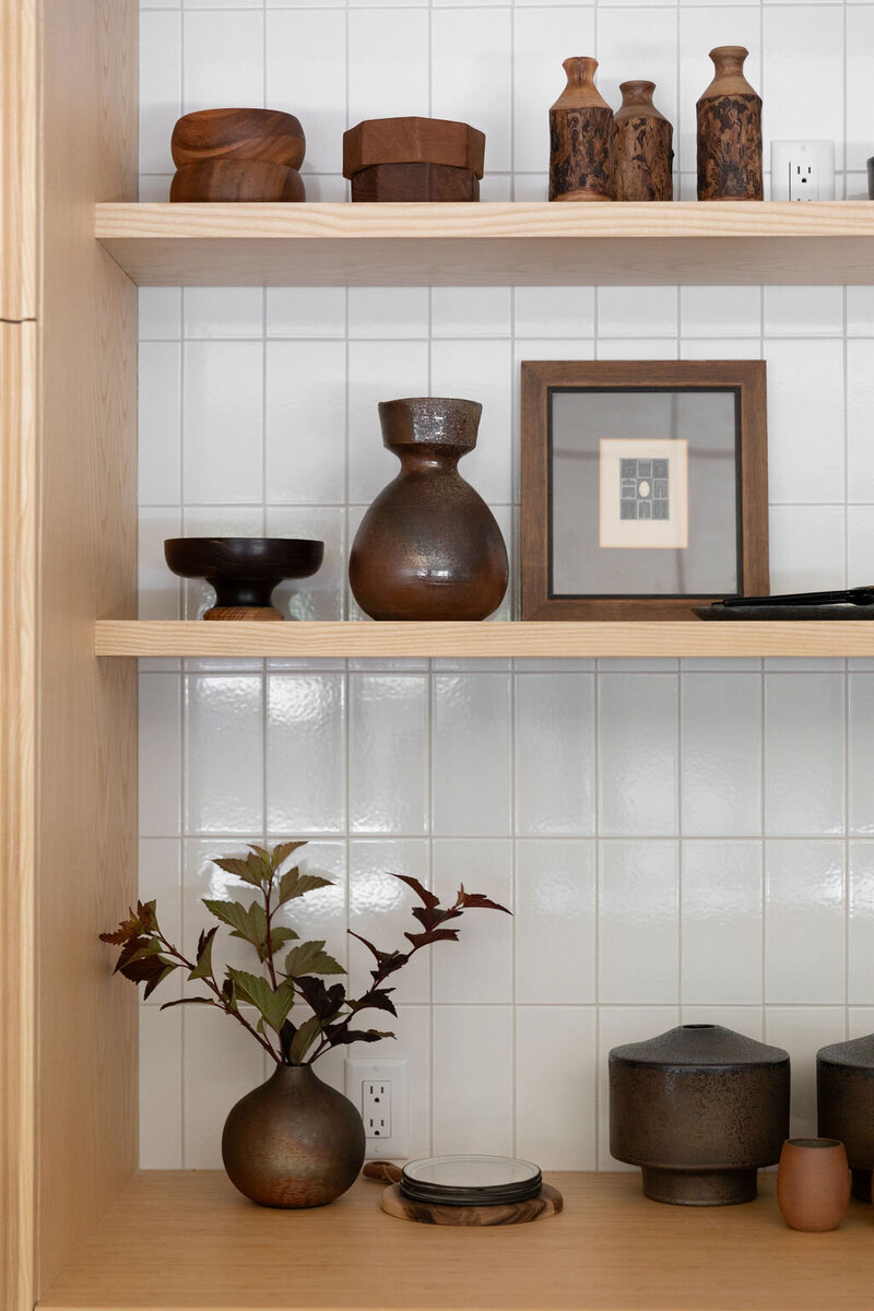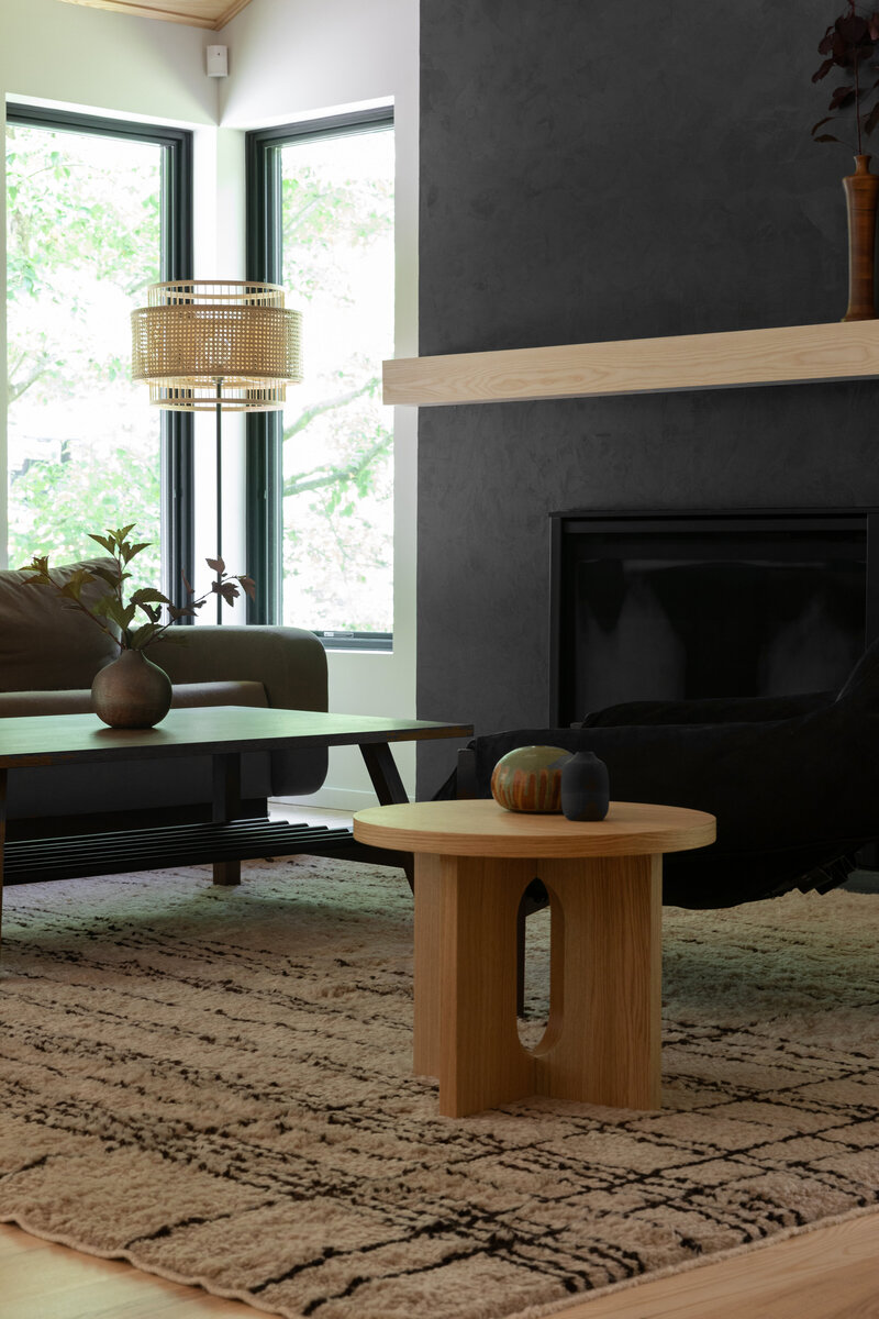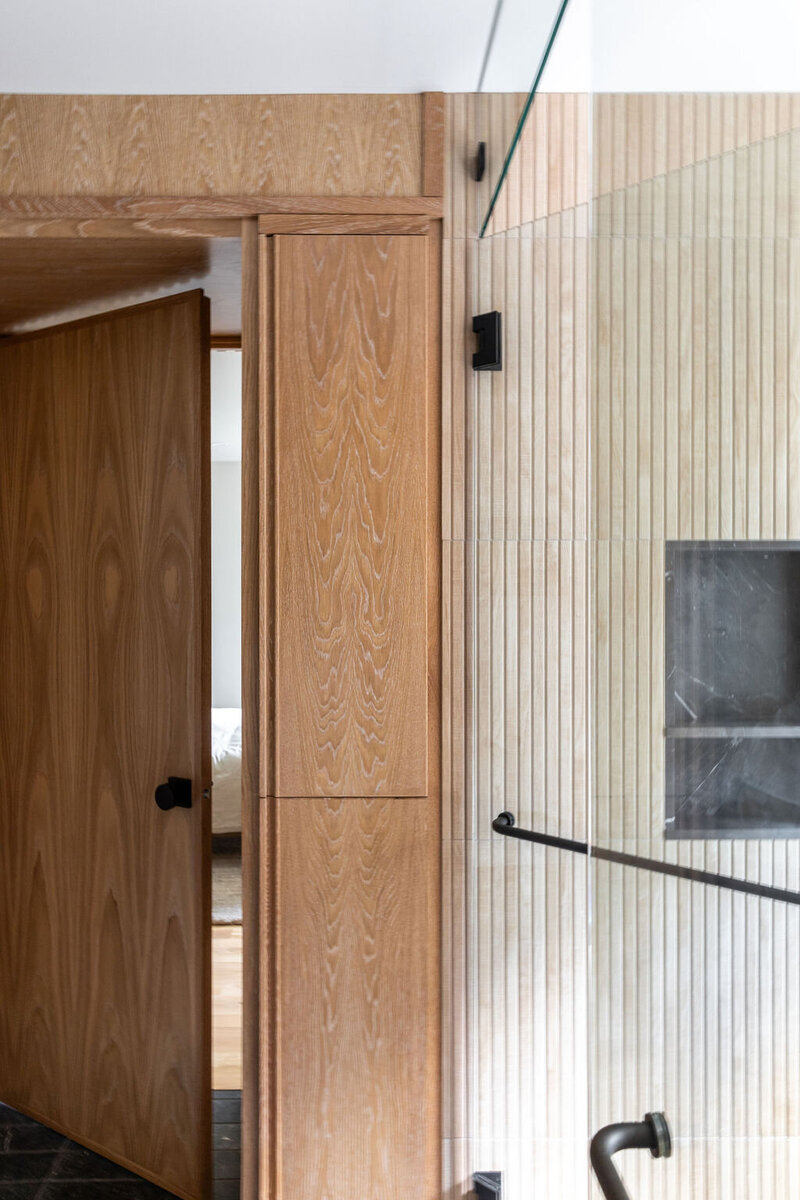 This project transformed a modest 1980’s home into a dynamic Japanese Modern structure that utilizes every inch of space for a multi-generational family. Ash wood from felled trees on the client’s previous property clad the ceilings and a traditional japanese wet room serves as the primary bathroom.